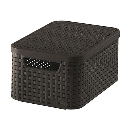 Odkladací box s vekom, s efektom ratanu, 7l, hnedá, CURVER, "Style S"