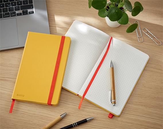 Záznamová kniha, A5, štvorčeková, 80 listov, tvrdá obálka, LEITZ "Cosy Soft Touch", teplá žltá