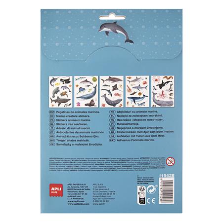 Nálepky, znova použiteľné, 50 ks, APLI Kids "Stickers", morské živočíchy