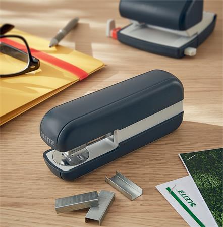 Najlepšie výsledky dosiahnete v kombinácii so sponkami Leitz Power Performance P3 s ostrými koncami nožičiek, krabička sponiek je súčasťou balenia
