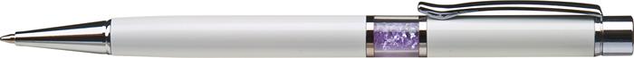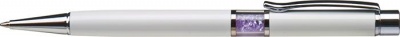 Guľôčkové pero, Crystals from SWAROVSKI®, biele, s orgovanovo fialovými krištáľmi v strede tela, 14cm, ART CRYSTELLA®