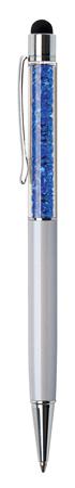 Guľôčkové pero, dotykové, so zafírovo modrými kryštálmi v hornej časti, dotykové, 14 cm, ART CRYSTELLA®