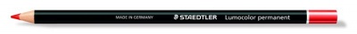 Farebná ceruzka, valcovitý tvar, na všetky povrchy, vodovzdorná (glasochrom) STAEDTLER "Lumocolor 108", červená