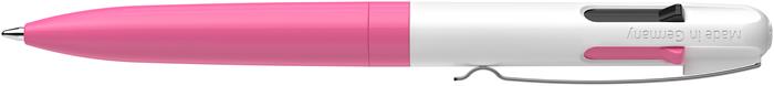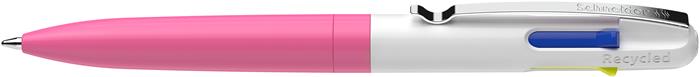 Guľôčkové pero, 0,5 mm, stláčací mechanizmus, 4 farby, SCHNEIDER "Take 4 Neon", ružové-biele