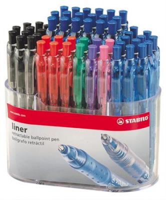 Guľôčkové pero, displej, 0,38 mm, stláčací mechanizmus, STABILO "Liner 308", mix