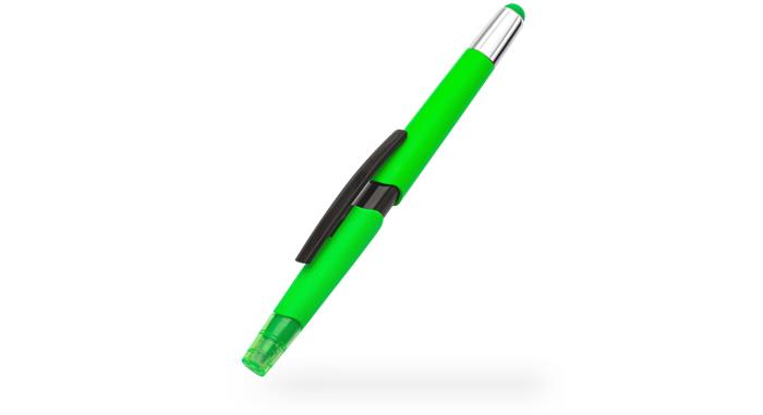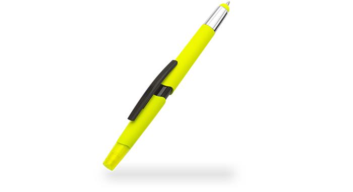 Multifunkčné pero! -1 telo viac funkcií -ideálne na dotykové displeje (koniec vrchnáku) -ideálne na písanie poznámok -ideálne na zvýraznenie podstatného obsahu -3  rôzne neónové farby (2 x neónovo žlté, 1 x neónovo zelené, 1 x neónovo oranžové) -farba atramentu guľôčkového pera: modrá -farba zvýrazňovača sa zhoduje s farbou tela pera -odolný klip -rozmery: 14 x 1,7 cm