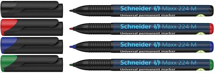 Permanentný popisovač, sada, OHP, 1 mm, SCHNEIDER "Maxx 224 M", 4 rôzne farby