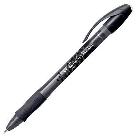 písaný text zmizne v dôsledku prešúchania gumou na konci vrchnáka (dá sa neobmedzene veľa krát prepisovať a znova mazať)