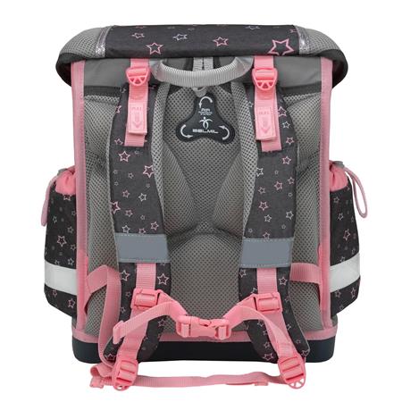 Ergonomický dizajn: -Ergonomicky tvarovaná školská taška s priedušným, polstrovaným chrbtovým systémom, ktorý zabezpečuje maximálne pohodlie a pomáha predchádzať bolestiam chrbta. Ergonomickú vhodnosť potvrdzuje aj certifikát nemeckého inštitútu AGR. Nastaviteľné popruhy: -odnímateľný a nastaviteľný hrudný popruh, nastaviteľné ramenné popruhy pre dokonalé prispôsobenie -stabilné a pohodlné nosenie -polstrované ramenné popruhy v tvare S, prispôsobiteľné postave dieťaťa, zabezpečujú optimálne usadenie a komfort pri nosení.  Premyslený vnútorný priestor: -tri priestranné vnútorné priehradky vhodné aj na zošity a knihy formátu A4, vďaka čomu majú všetky školské potreby svoje miesto – dve bočné vrecká na dáždnik alebo 0,7 l fľašu na vodu. Praktické bočné vrecká:Dve bočné vrecká sú ideálne na uloženie dáždnika alebo 0,7 l fľaše na vodu a umožňujú rýchly a jednoduchý prístup. Jednoducho ovládateľná pracka: -ľahko otvárateľná kovová pracka s reflexným prvkom, ktorý zvyšuje viditeľnosť a bezpečnosť dieťaťa v cestnej premávke.  Superľahká konštrukcia: -hmotnosť tašky je len 930–990 g, takže zbytočne nezaťažuje ramená ani chrbát dieťaťa. Európska výroba: Produkt je navrhnutý a vyrábaný rodinnou firmou v Európe už od roku 1965, čo zaručuje jeho vysokú kvalitu a spoľahlivosť. Ideálna voľba pre rodičov, ktorí kladú dôraz na ergonomickú, bezpečnú a ľahkú školskú tašku pre svoje dieťa.