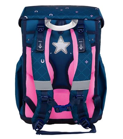 2 vnútorné priehradky (vhodné pre knihy formátu A4) + 2 bočné vrecká (na dáždnik a fľašu s objemom 0,7 litra) + 1 priehradka na desiatu