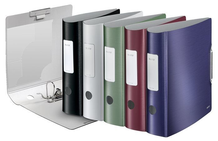 Inovatívny mobilný zoraďovač v dômyselných farbách radu Leitz Style, povrch v dizajne brúsenej ocele.,