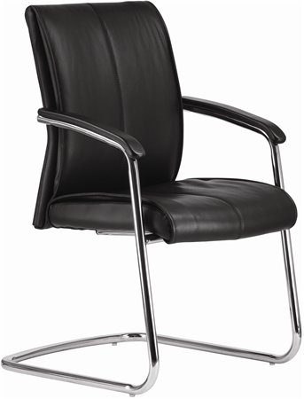 Konferenčná stolička, kožená, chrómový podstavec "Chicago", čierna