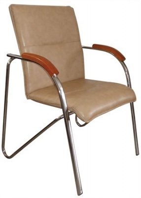 Konferenčná stolička, koženka, chrómová oceľ, opierky rúk: čerešňa, "Sabina", béžová