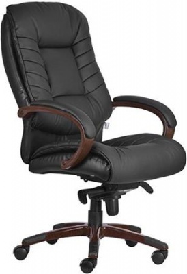 Manažérska stolička, pravá koža, umelý plastový krížový podstavec s imitáciou dreva, model "Buffalo HX", čierna