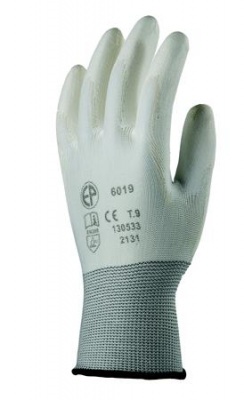 Montážne rukavice, biele, na dlani namočené do polyuretánu, veľkosť: 8