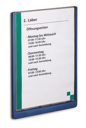Inovatívna informačná tabuľa s atraktívnymi zaoblenými hranami. Spája v sebe moderný dizajn a funkčnosť. - oblasť použitia: vo vzdelávacích centrách, nemocniciach, stravovaní atď. -vložky sa dajú jednoducho vymeniť -upevnenie: skrutka -materiál: plast -orientácia: na výšku -formát: A4 -vonkajšie rozmery: 233 x 327 mm (š xv) -rozmery štítku: 210 x 297 mm (š xv) - s montážnou sadou, spolu s vŕtacou šablónou a návodom - vložky na tlač sú dostupné samostatne