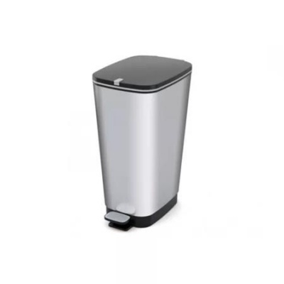 Odpadkový kôš, s pedálom, kovový efekt, 45 l, CURVER "Chic", strieborný