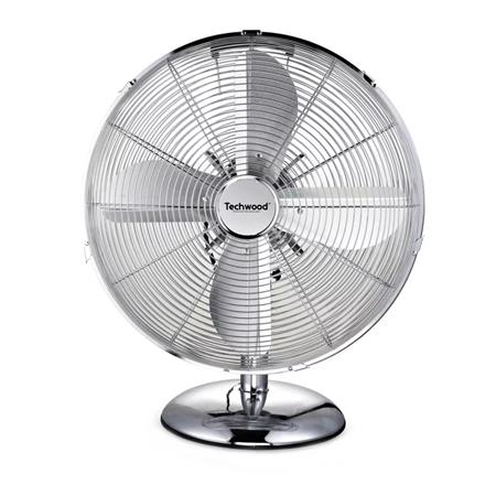 Techwood kovový stolný ventilátor ponúka štýlový dizajn a spoľahlivý výkon, ideálny do domácnosti alebo kancelárie. Vďaka priemeru lopatiek 30 cm a výkonu 45 W zabezpečuje efektívny prúd vzduchu, pričom jeho chrómovaný kovový kryt vyžaruje nadčasovú eleganciu.