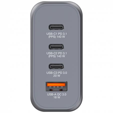 Sieťová nabíjačka, 2xUSB-C PD (140W), USB-C PD (20W), USB-A QC 3.0, EU/UK/US, GaN, VERBATIM