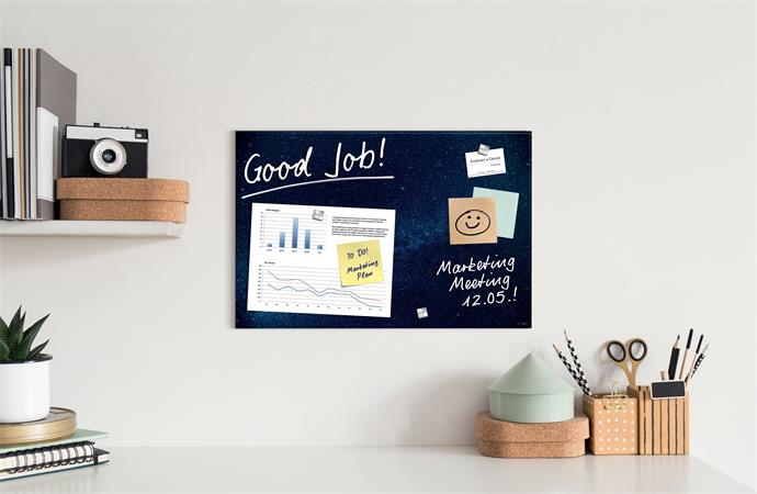 Na sklenený, magnetický povrch je možné písať kriedovým popisovačom - obsahuje 3 "SuperDym" extra silné magnety a potrebné materiály na inštaláciu - bezrámový povrch z tvrdeného skla (z bezpečnostného skla EN 12150-1) - exkluzívny vzhľad do kancelárií, konferenčných miestností, reštaurácií - bezrámová inštalácia - plávajúci efekt - rozmer: 60 x 40 x 15 cm - záruka: 25 rokov na povrch