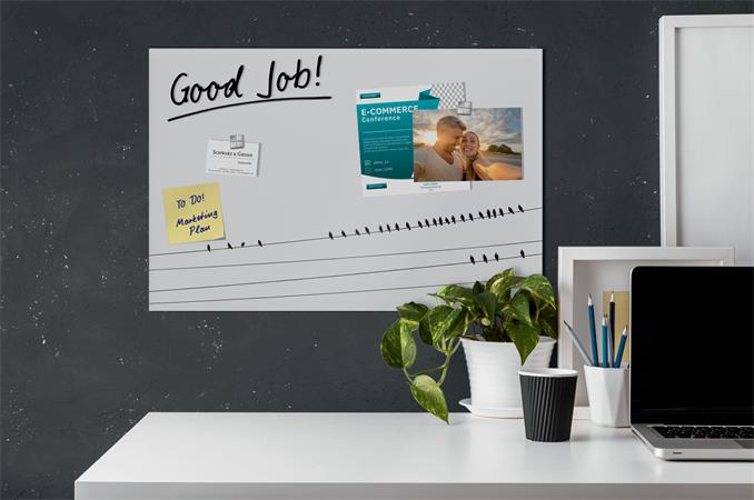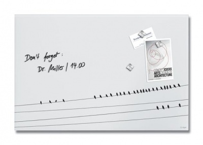 Hlavná stránkaTechnologické výrobkyPrezentáciaTabuleMagnetická sklenená tabuľa, 60x40x1,5 cm, SIGEL "Artverum® ", vzor Little birds, matná