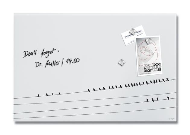 Magnetická sklenená tabuľa, 60x40x1,5 cm, SIGEL "Artverum® ", vzor Little birds, matná